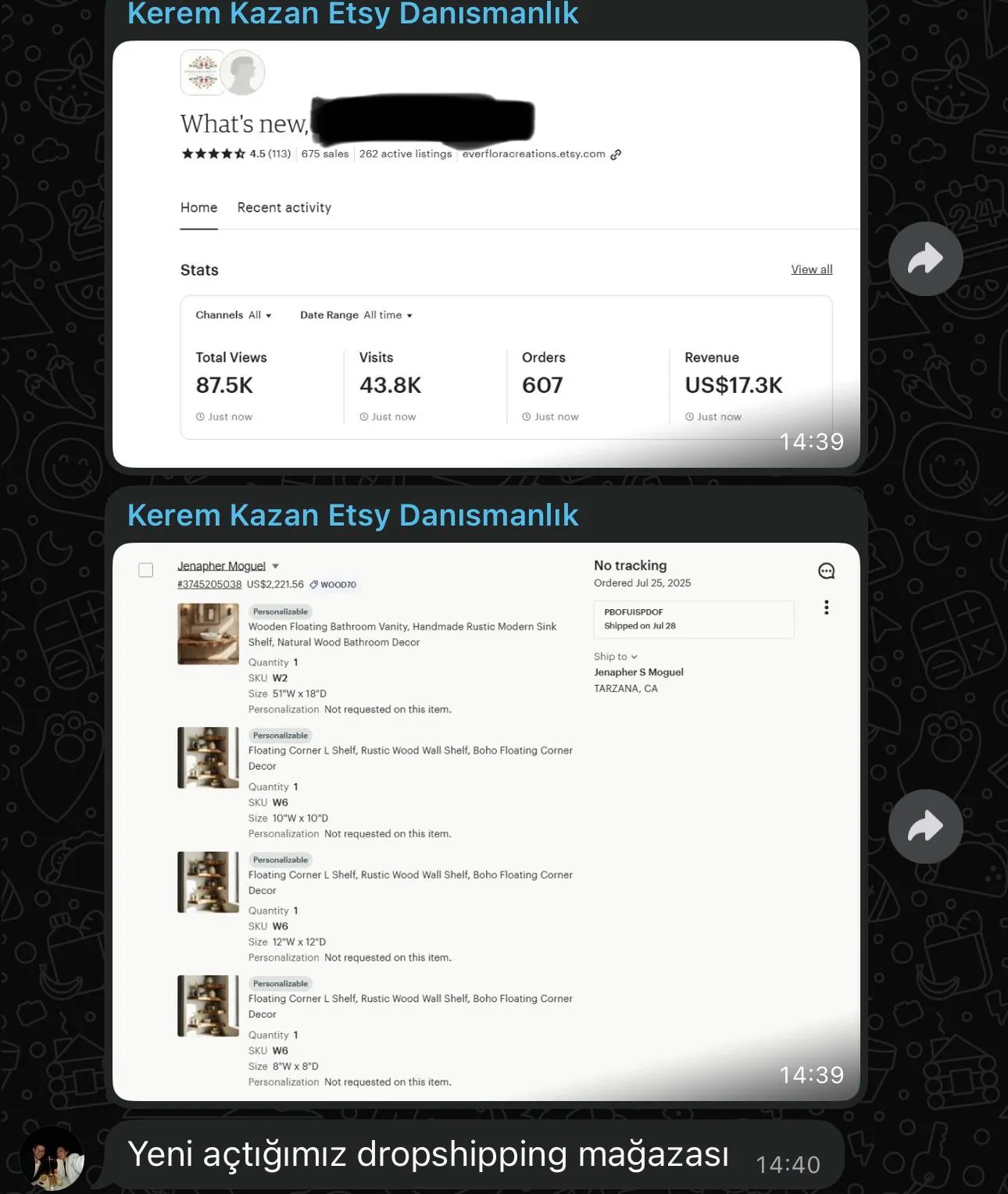 Etsy Dropshipping'le 0'dan başlayan danışanlarımızla reklamsız olarak aldığımız sonuçlar